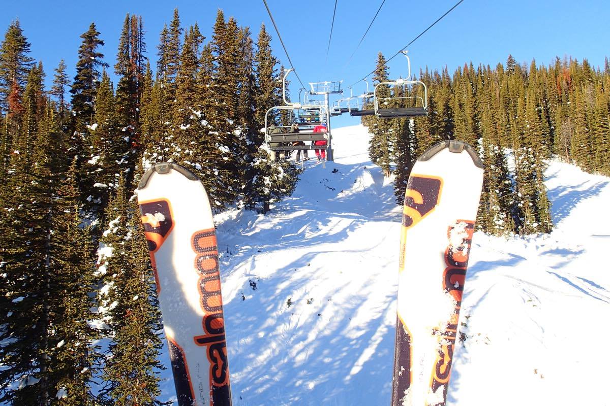 この日はリフトの動きだす時間、朝9時に集合してスキーです。まだ太陽も低く、月と太陽を一緒に眺めつつ、リフトで山に登っていきます。