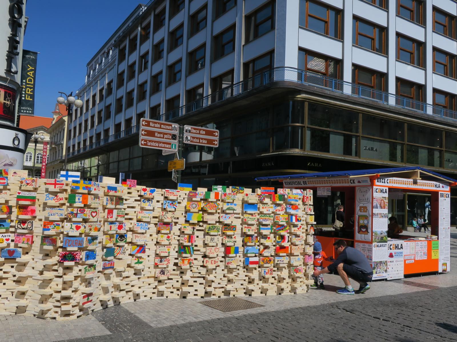 絵になるプラハですが、ちょうど訪れたタイミングでアートウィークをやっていました。これは、子どもが絵を描いたブロックを積み上げて展示したもの。