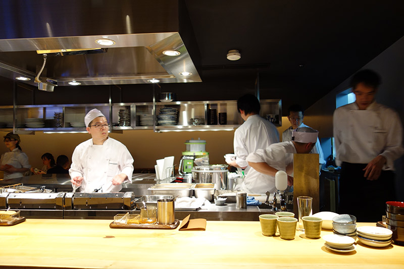 店内は真ん中にキッチンがあり、衣をつけているところや揚げているところを見ることができます。この日はプレオープンイベントのため、たくさんのお客さんが来ていて、あのとんかつは僕のだろうか、とやきもきしながらキッチンを眺めていました。