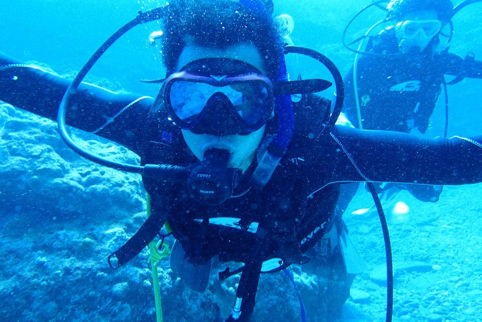 しかも、1本目のダイビングの講習中に溺れかけまして。