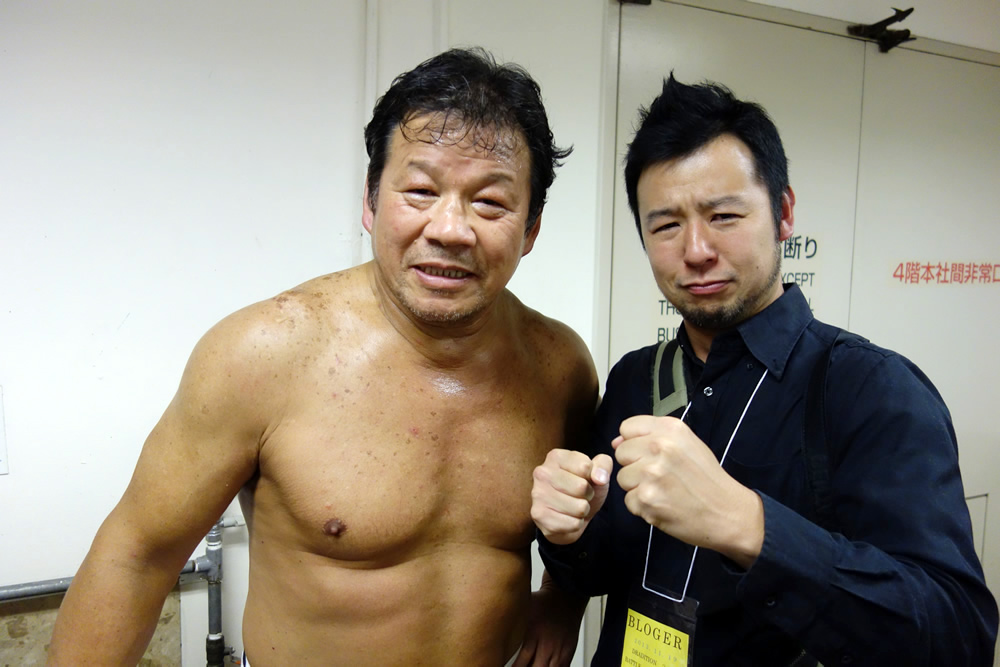 そして藤波さんとも! いや~、人生って不思議なもんだなぁ。まさか20年経って、試合後の藤波さんとツーショットの写真が撮れるとは…