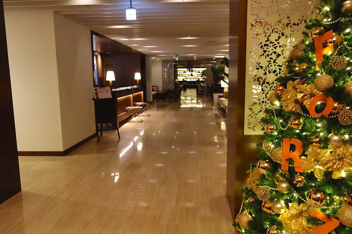 さて、エレベーターを降りるとクリスマスツリーの奥に広いフロント。