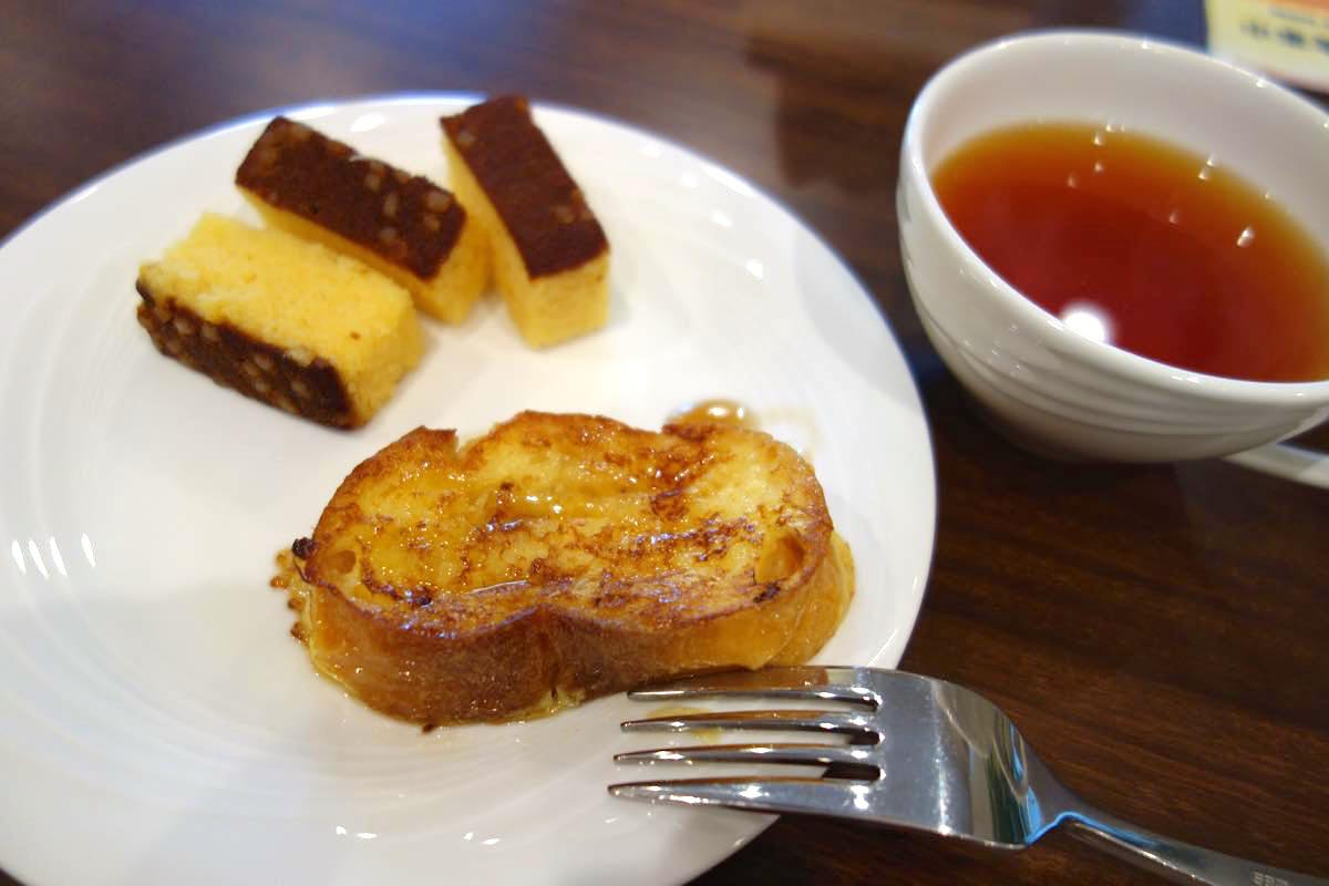 長崎といえばカステラ! ということで、デザート代わりにカステラもいただきました。フレンチトーストも焼いていたので、それもいただきつつ…