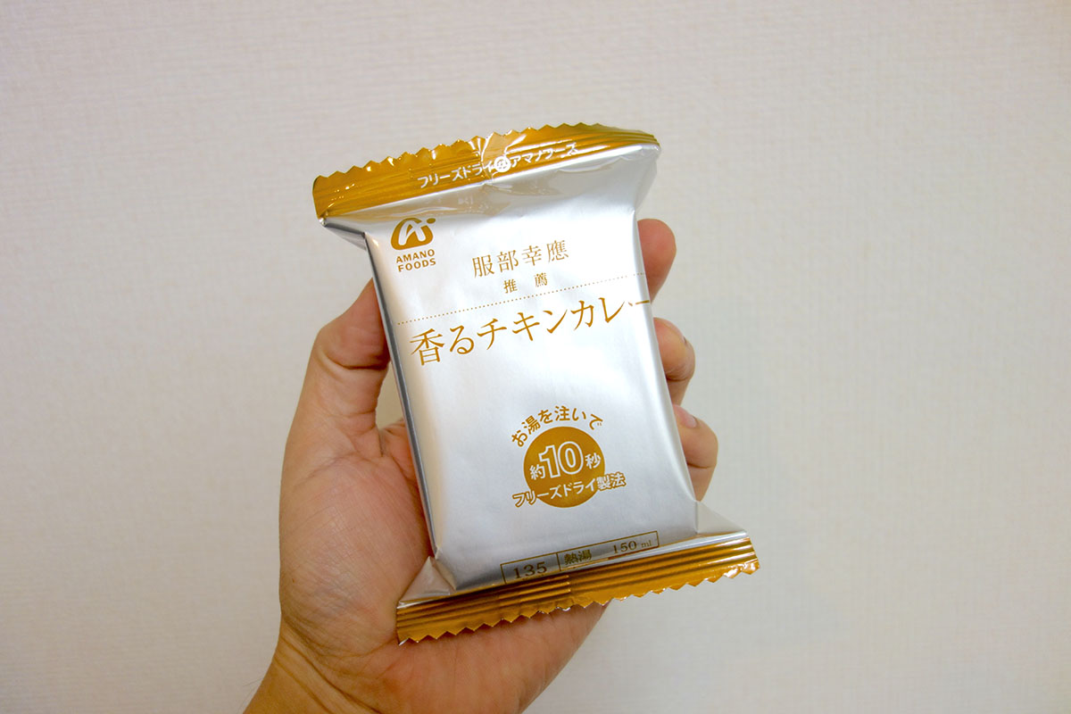 最近、巷で話題の(というよりも、アマノフーズさんがPRなどなど、がんばっている結果でしょうか)フリーズドライの商品をいろいろ買ってきてみました。その中から、今回は「香るチキンカレー」というものをいただいてみました。