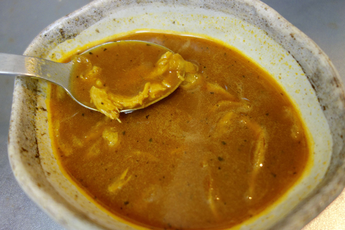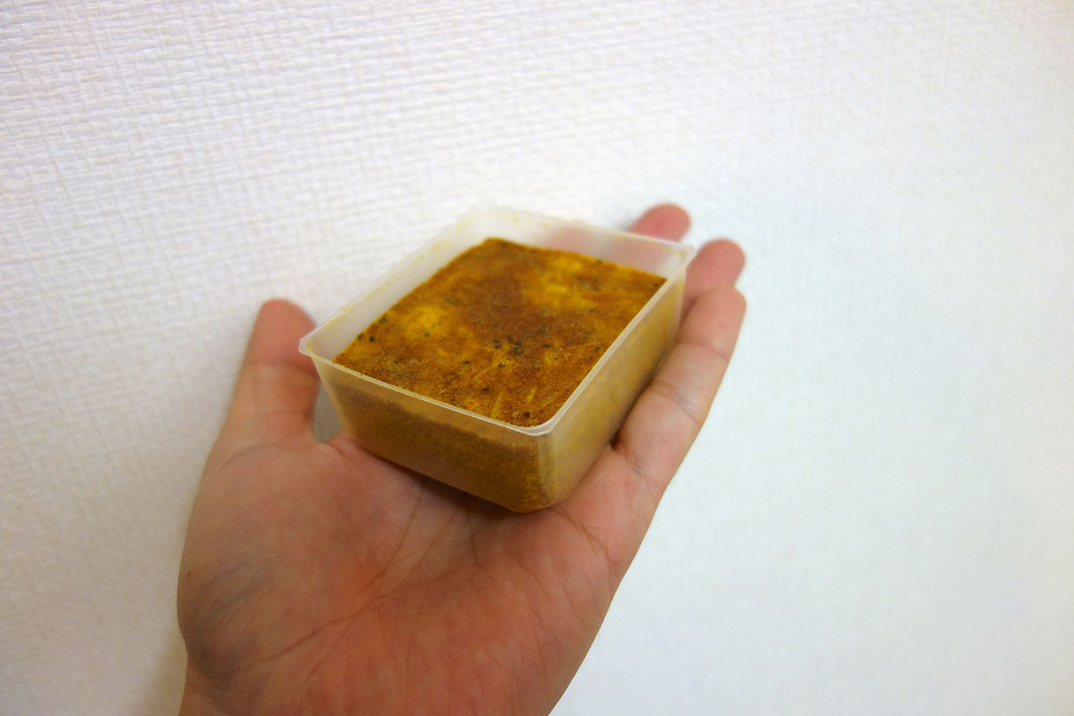 10秒ほどかき混ぜたら完成です! カレーソースの中には小さめのチキンも入っています。