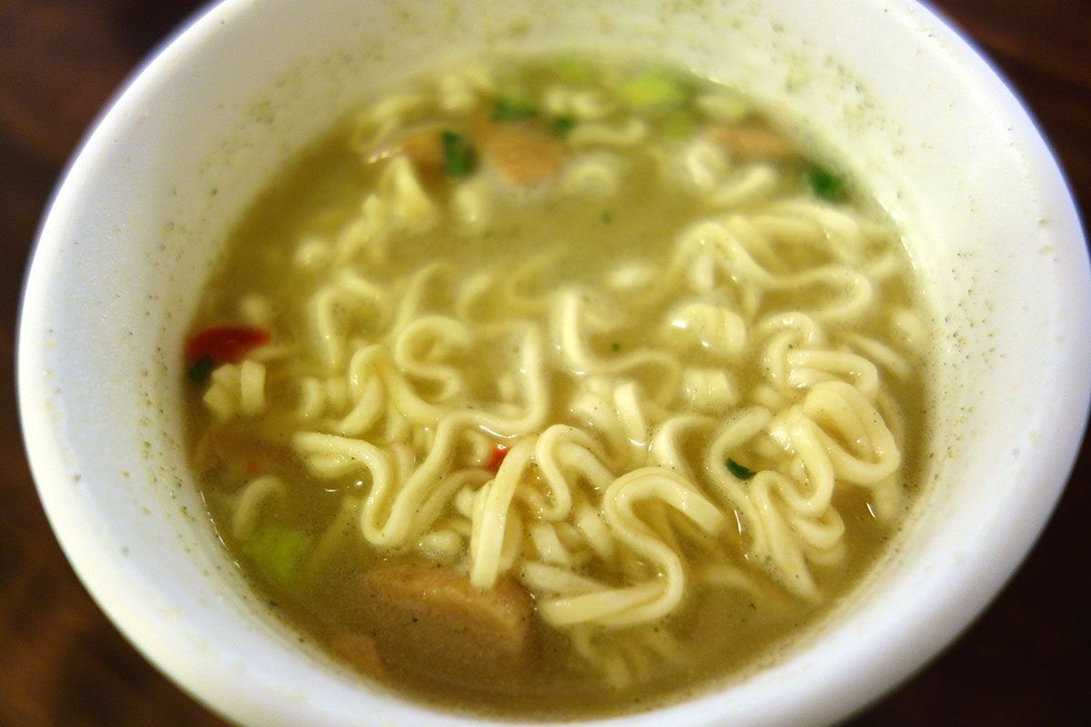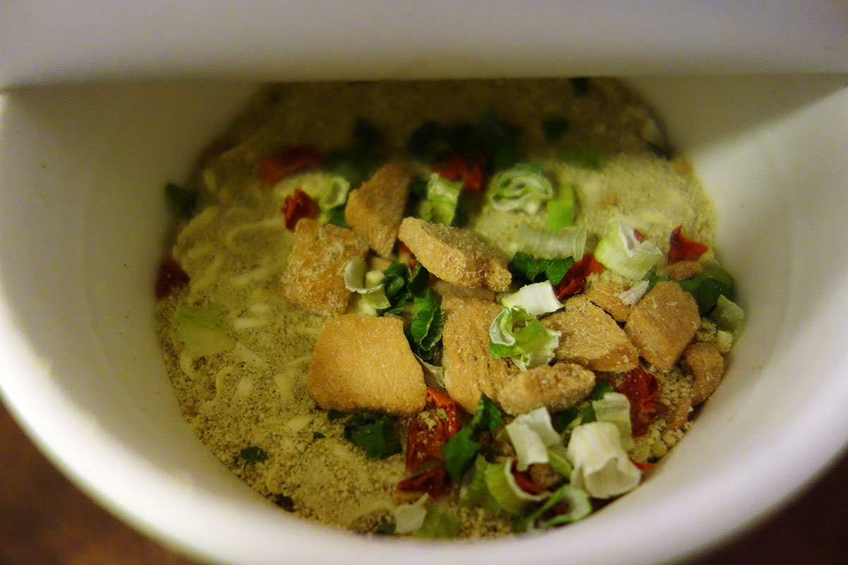 グリーンカレーでも、とろみが多いのと少ないのがありますけど、カップ麺としての好みで云えば、もう少しスープにとろみがあってもいいかな、と。