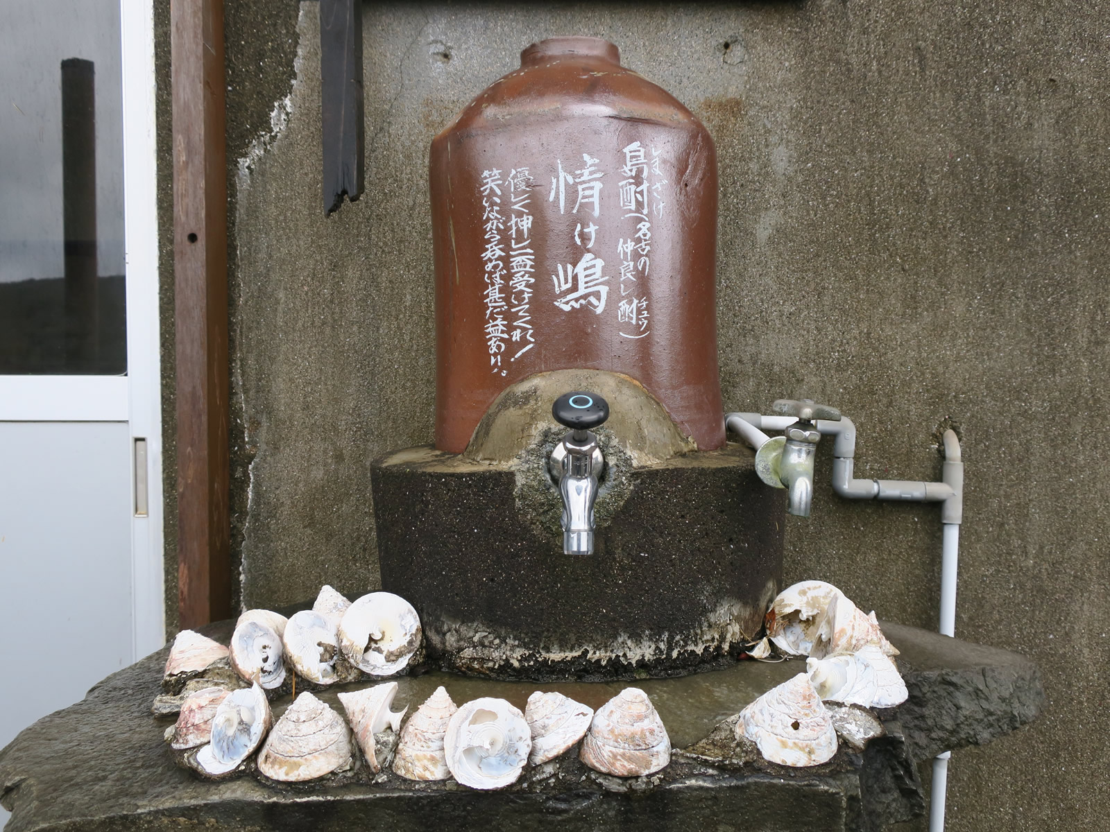 駐車場から見晴らし台までの間に、昨日1本いただいた島焼酎「情け嶋」の瓶がありました。蛇口っぽいものがついているので、恐る恐る押してみたんですが、何も出てきませんでした。車でしかそれないところなので、さすがに… ですよね。
