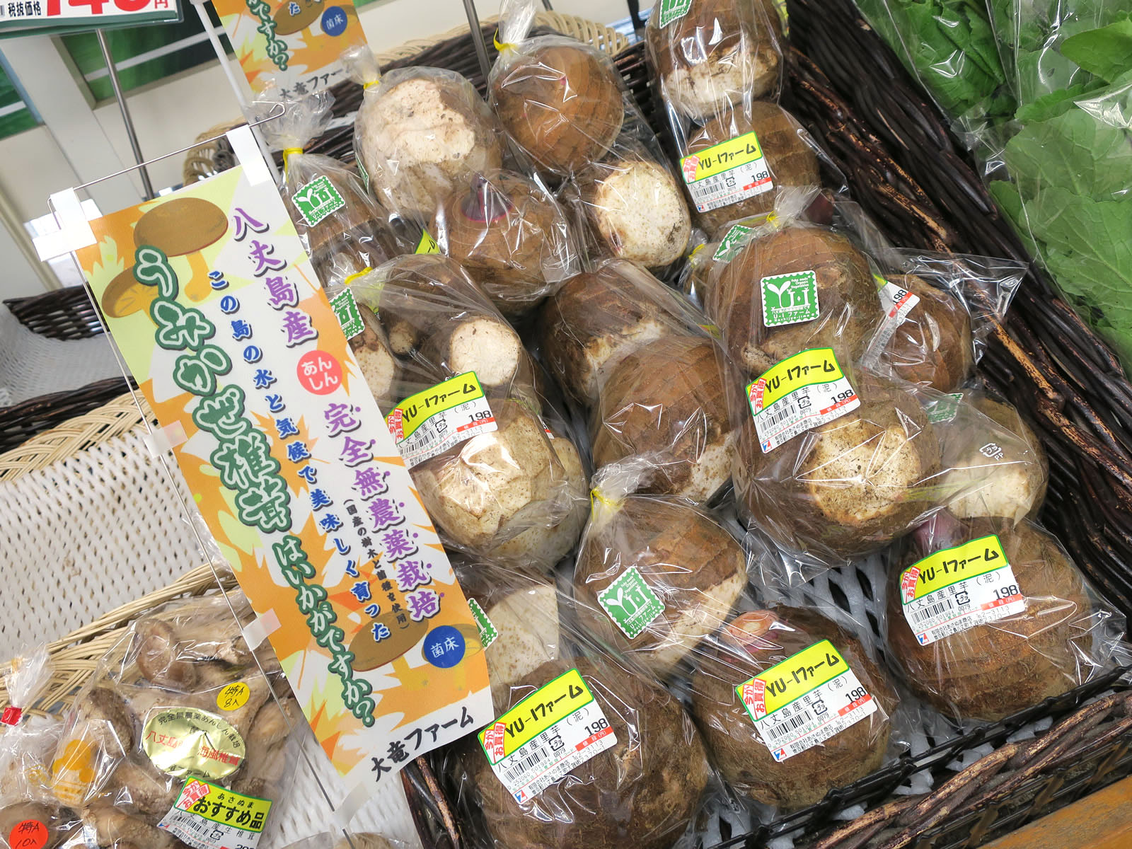 名産だという里芋も売っていました。満天望のご主人に伺ったんですが、これを皮ごと海水で煮て、皮をむいたものに酒盗をのせて食べると美味いんだとか。沖縄風に云えば、里芋のマース煮でしょうか。ああ、日本酒や焼酎と一緒にいただきたいです。