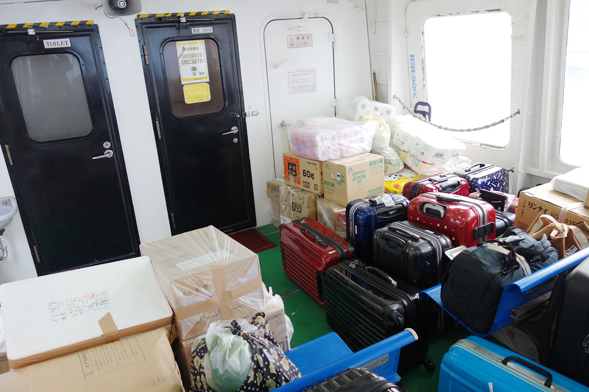 船が来ると、人と荷物がどんどん載せられていきます。鳩間島の人口は100人もいないそうなのですが、フェリーは満員に近いくらい乗っていました。(が、これは後で西表島に行く人だとわかりました)