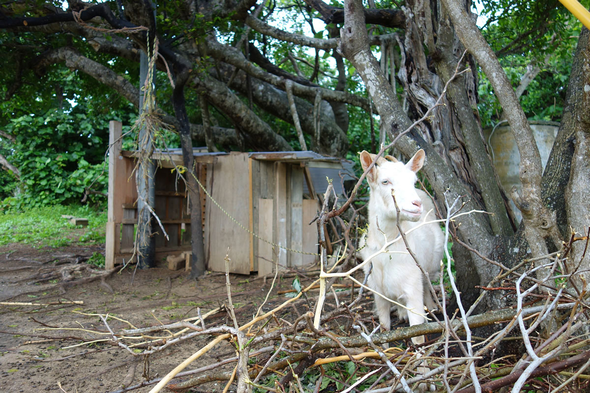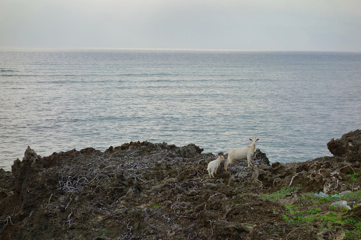 鳩間島を歩いてみると、小学校に向かう道には学校で飼っているのかな、にわとりや山羊がいました。