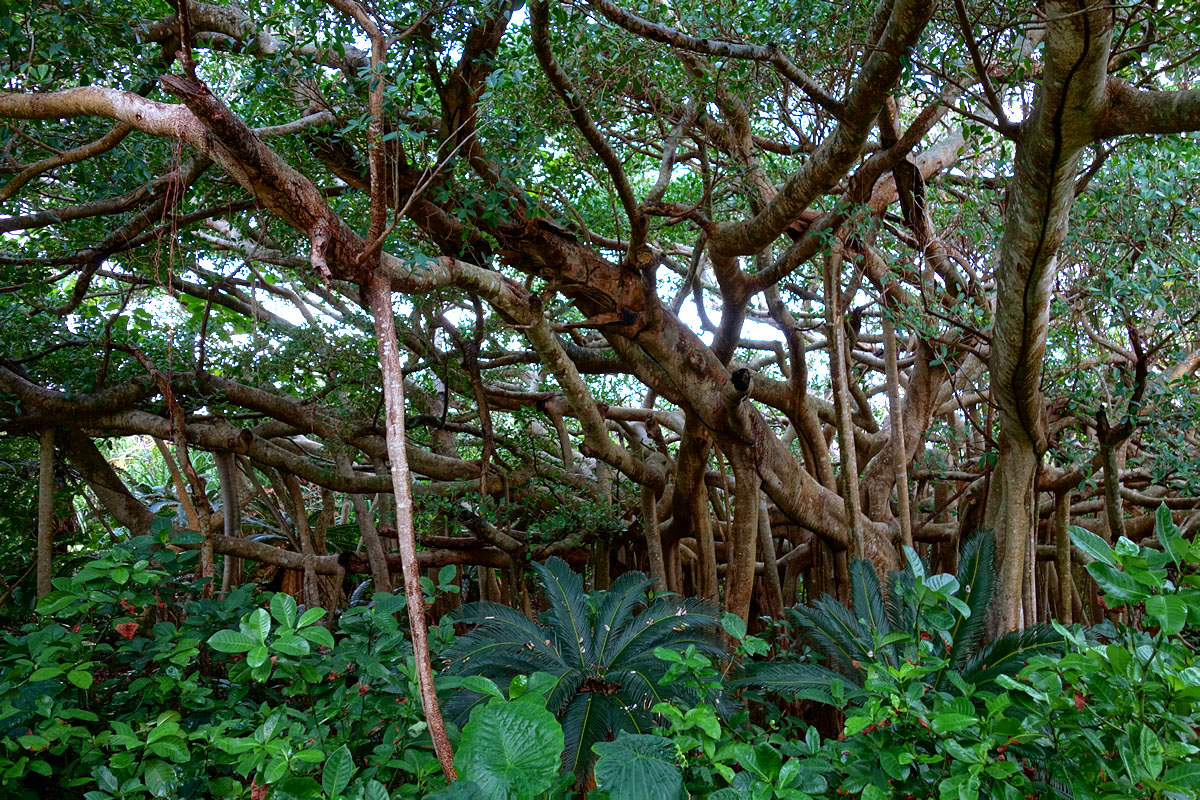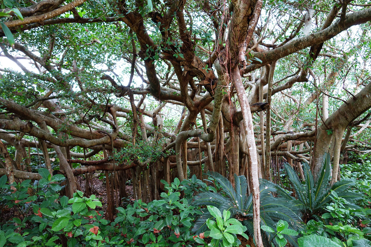浜からの帰り道に千手ガジュマルに出会いました。名前の通り、たくさん枝が伸びているガジュマルです。かっこよかったです。