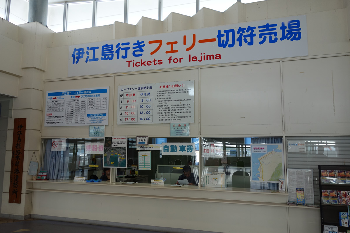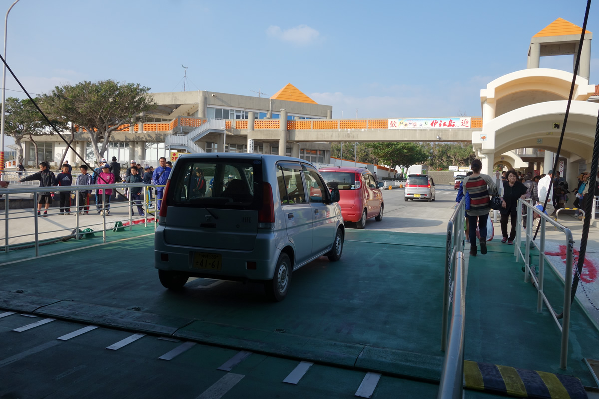 ちなみに、このフェリーには車も載せられるので、那覇でレンタカーを借りてそのままフェリーで伊江島へ、ということも可能です。(ちなみに我々は一泊だったし、本部港の駐車場に停めていきました。)