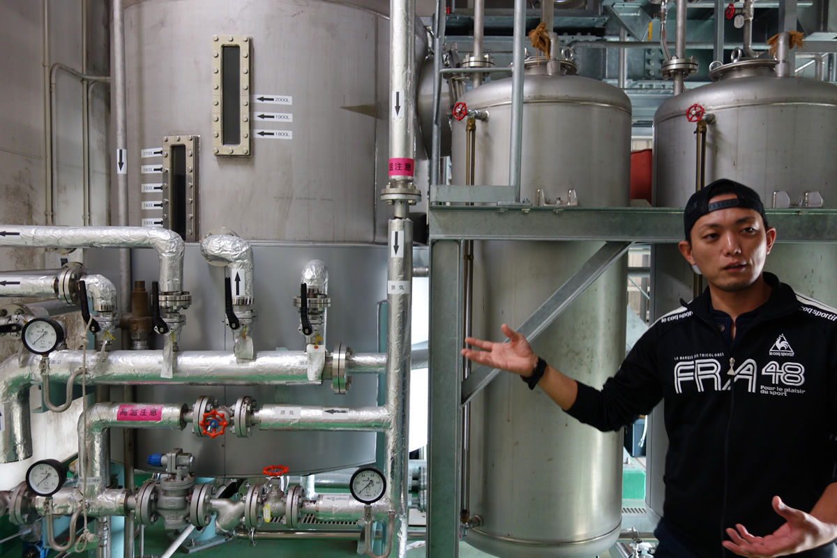 が、この機械、というかこの施設、元々、ラム酒のために作られた施設ではなく、アサヒビールと自治体の実験のために作られた施設だそうで、サトウキビを搾るのも一気にドカッとはできないそうです。1トンのサトウキビを搾るのに5時間はかかるのだとか… しかも、入れるのは手作業というね。