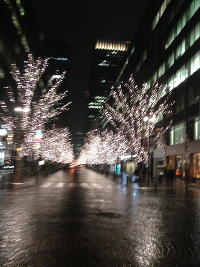 途中、イルミネーションがあったので、歩きながらこんな写真を撮りつつ。