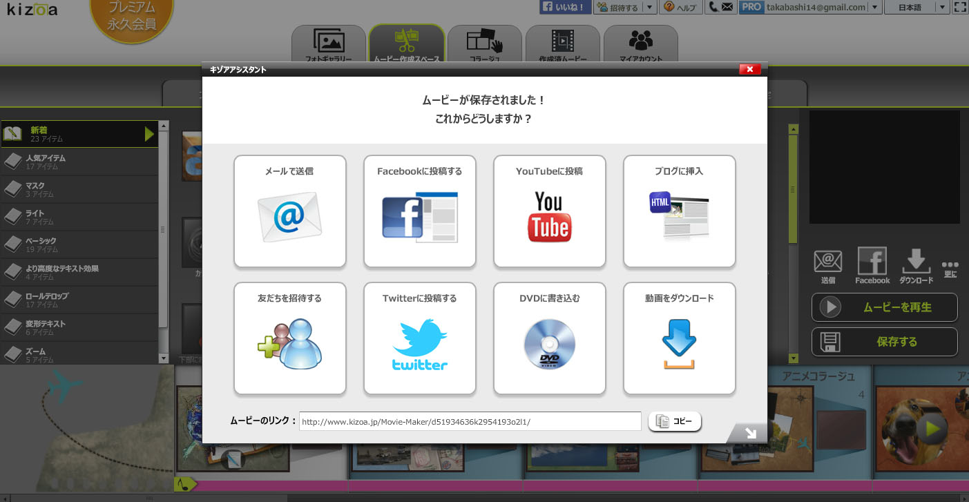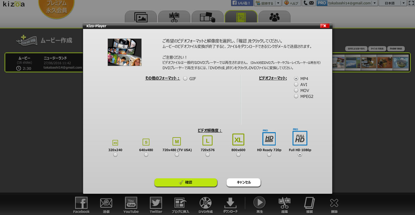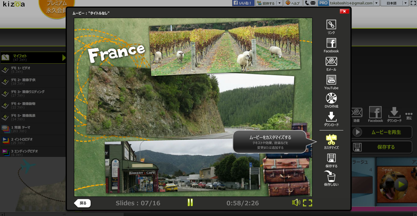 オンラインムービーメーカー Kizoa