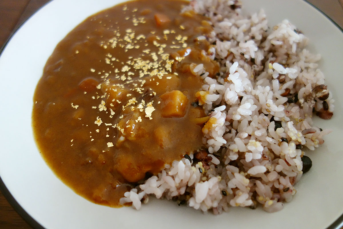 プレミアム感を出すために、無駄に金箔をのせてみた。一般的なご家庭には常備されていますよね?