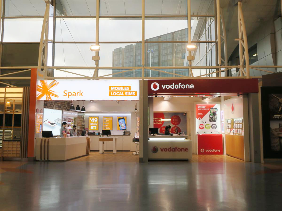 さて、オークランドでは街には出ずに、国内線に乗り換えて南側の島にあるネルソンという街を目指すのですが、フライトが12時過ぎ… さすがに暇なので、ラウンジでシャワーでも浴びて待っていようと思ってたんですが、シャワーのあるラウンジは国際線の出発ゲートの中… ということで、まずは通信手段であるSIM探します。が、探すまでもなく、到着口から出たところにブースがありました。