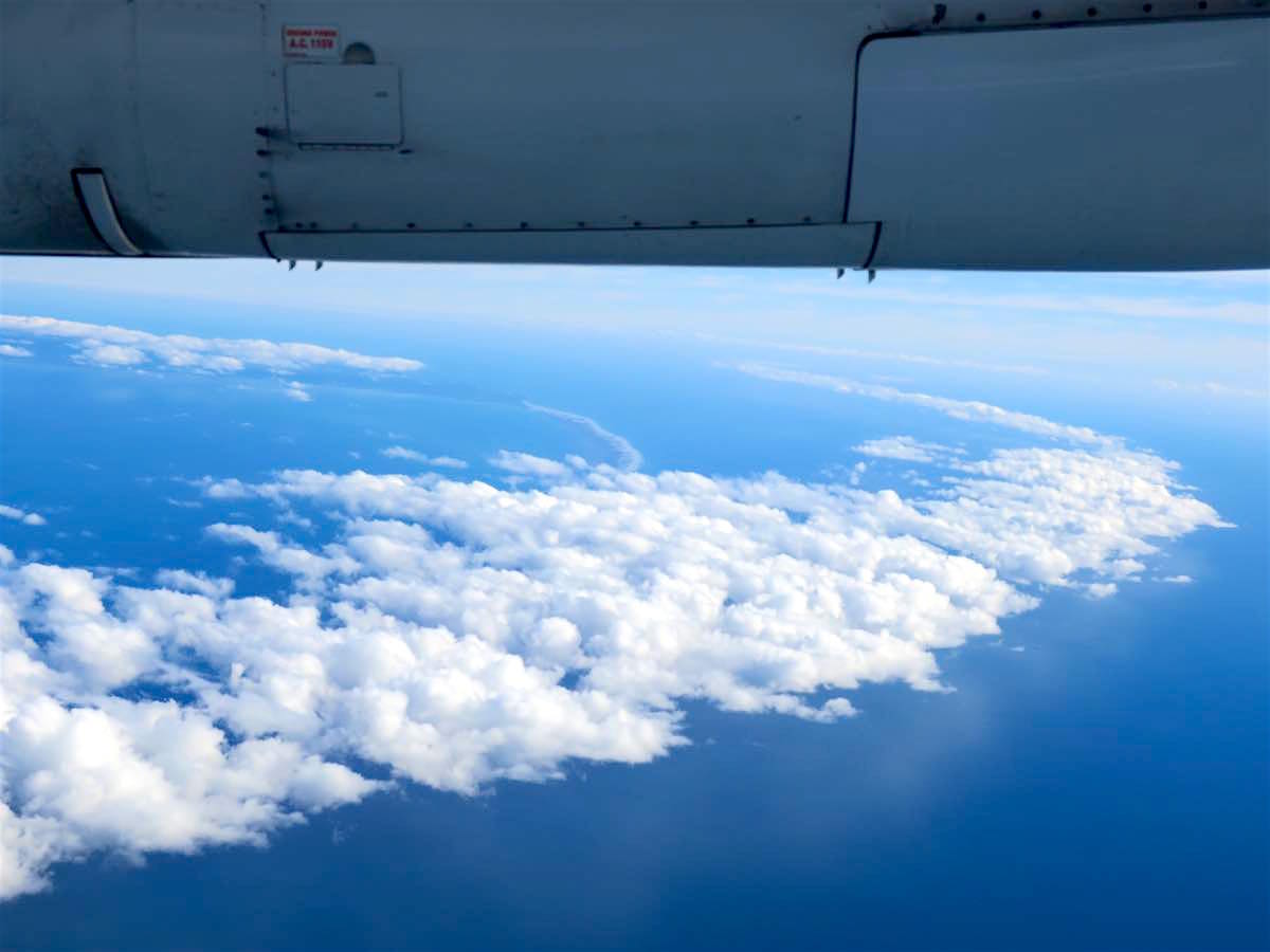 約1時間のフライトで500kmの移動です。途中、いくつかの街や不思議な地形を眺めつつ…