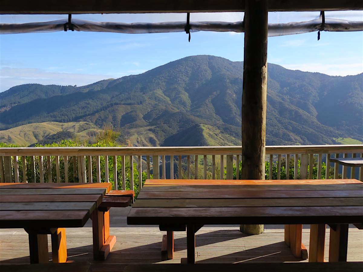 山の麓にあるレセプションで受付をしてお金を払ったら(85ドル)、ガイドさんの車で15分くらいかけて山を登ります。ワイルドロードです。辿り着いた山小屋からは、素敵な眺めが楽しめました。