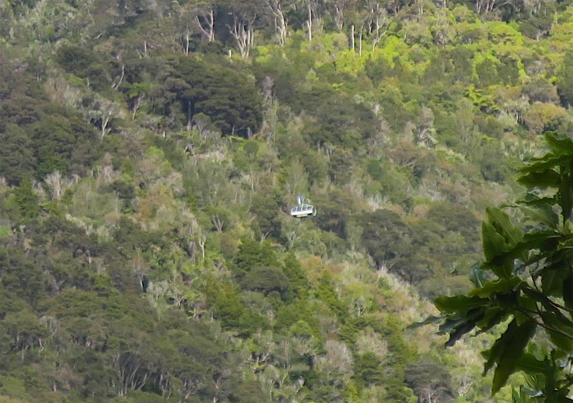 帰りは山の上からまたガイドさんの車で降りるんですが、その時に見たスカイワイヤーの小さいこと… 乗っている時は高さはそんなに感じなかったんですが、こう見るとすごいですね。