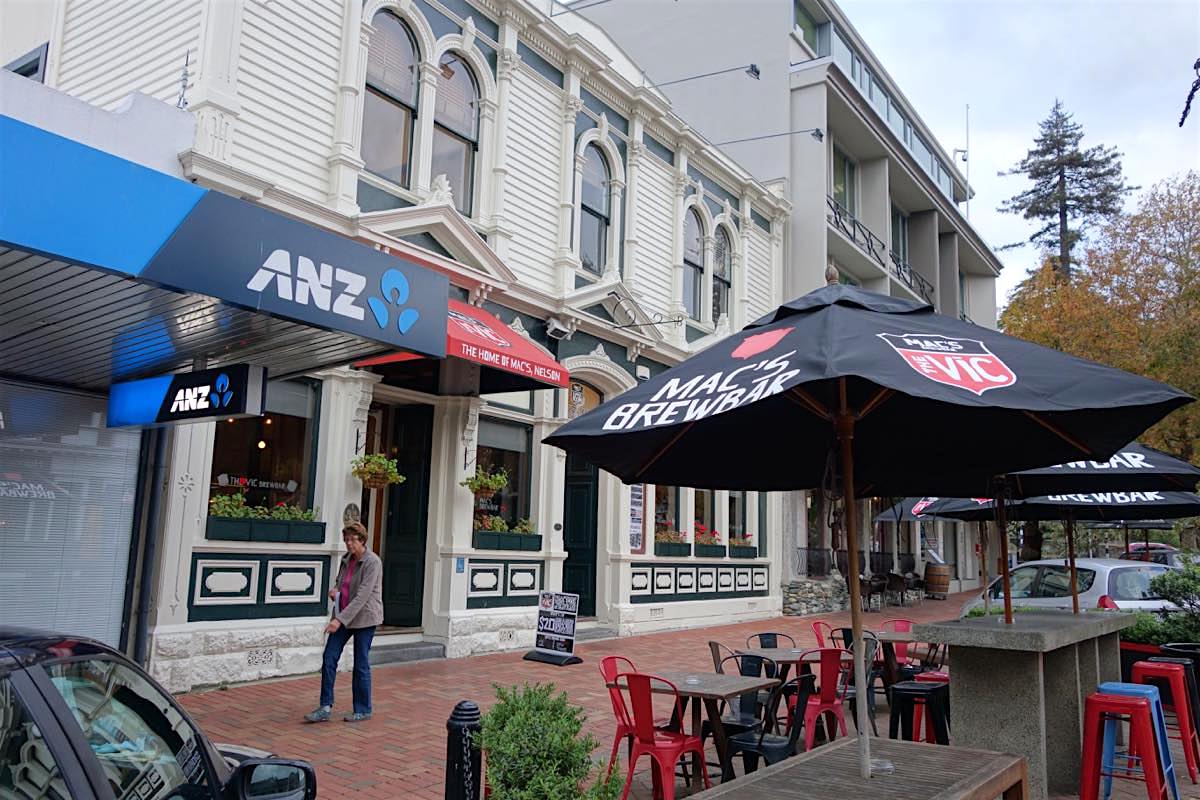 さて、一度ホテルに戻り、本格的に飲みに出かけます。今回、ネルソンで泊まったホテルにはバーがあり、そこのビールも美味しそうだったんですが、まずは外から攻めていきます。1軒目はMac’s Brewbarです。Mac’s はニュージーランドでも古参のクラフトブルワリーのようで、日本で云えば、ヤッホーブルーイング的な感じでしょうか。