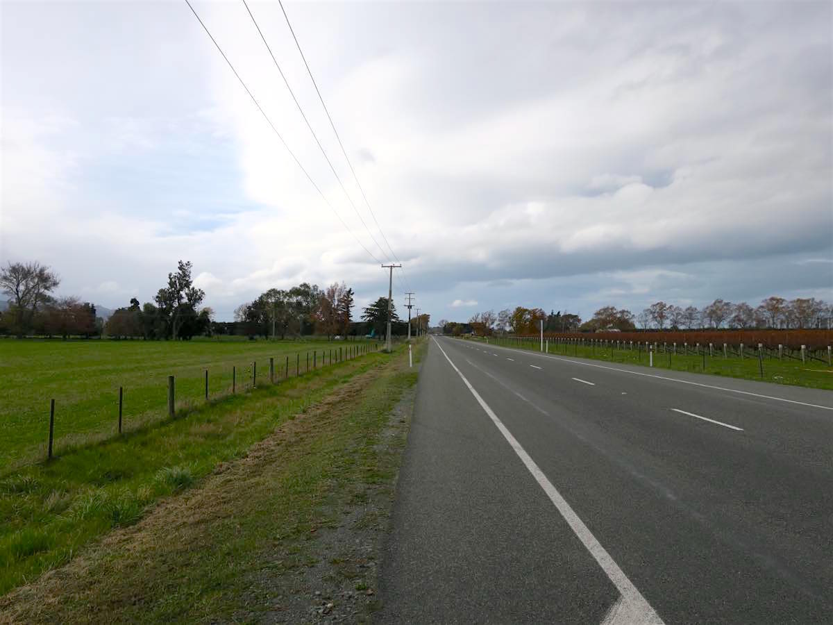 で、山道を抜けた後でワイン畑がズラ~ッと並ぶ真っ直ぐな道に入ったんで、遅れを取り戻そうとスピードを上げました。ブーンと… いや、この直線ですし!