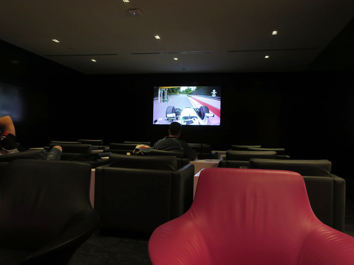 こちらはスポーツ中継を流している部屋。この時はモーターレースでしたが、ラグビーの試合とかあったら、かなり賑わいそうな気がします。