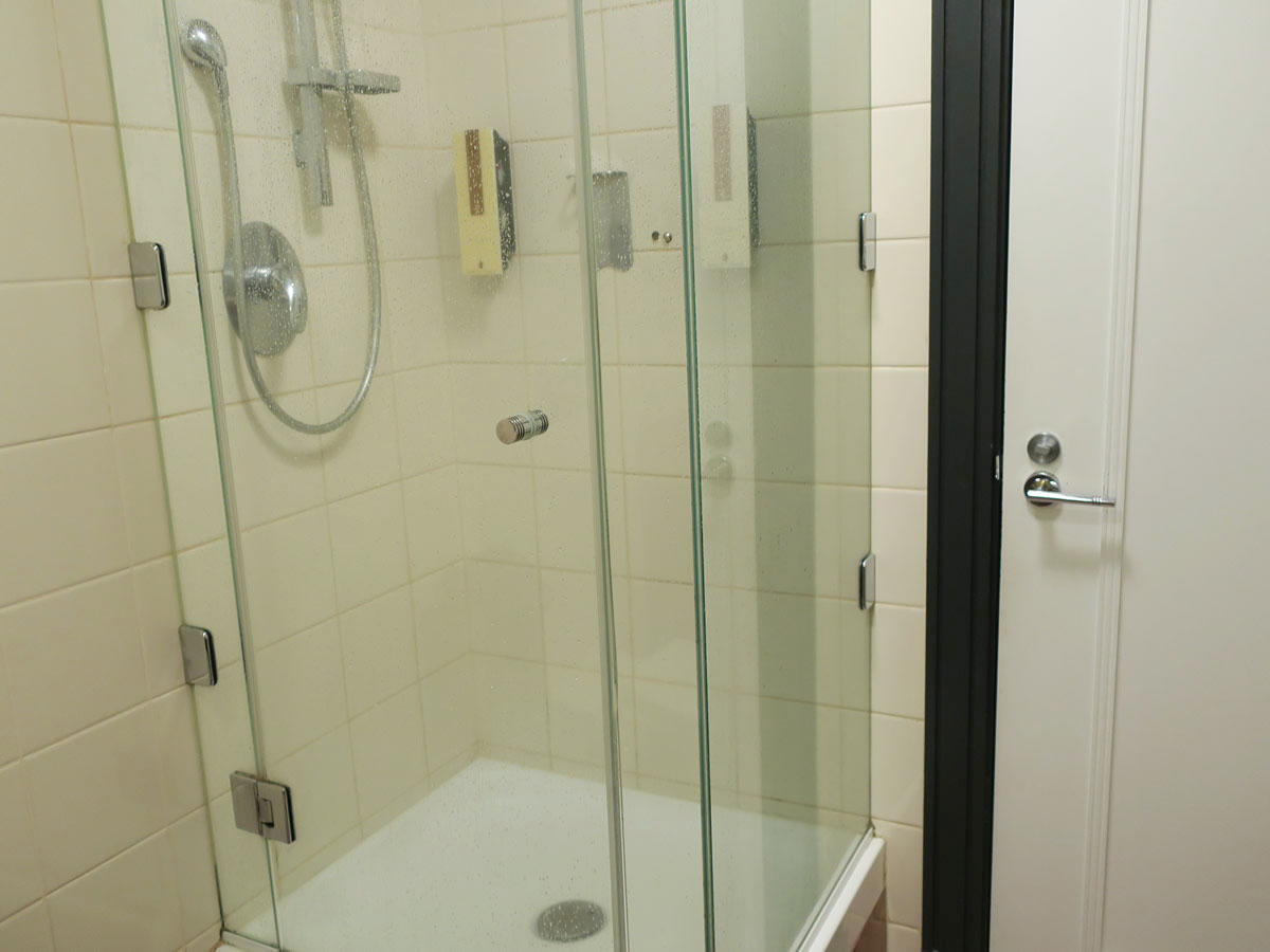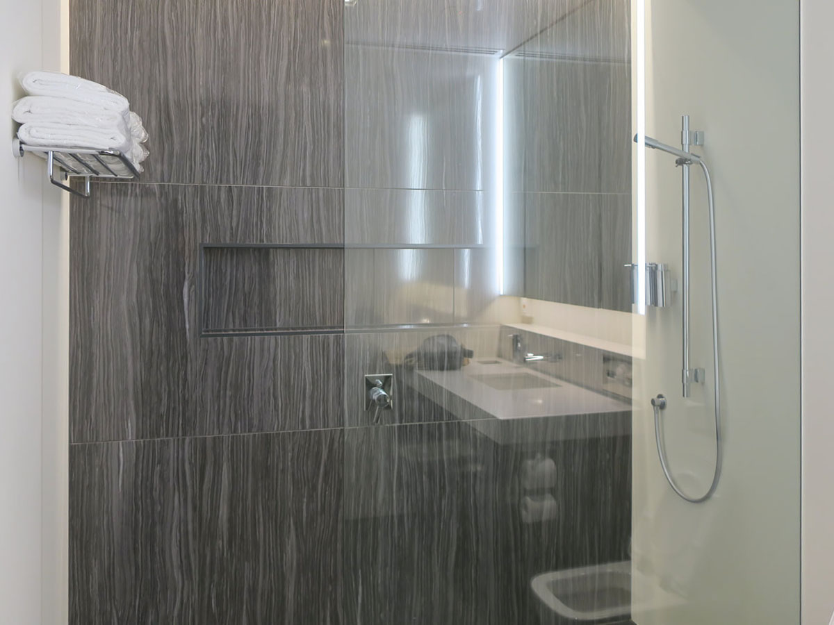 ラウンジ内にはシャワールームもありました。右側のガラスに映っているのは手前の洗面台です。