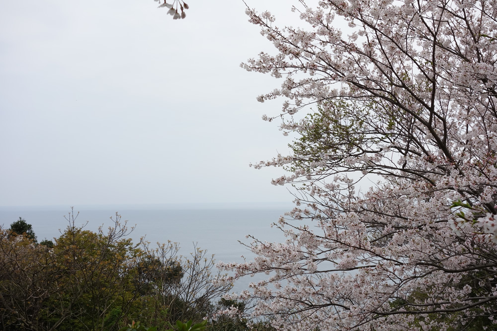 細い道を車で15分くらいでしょうか。満開の桜が迎えてくれました。桜越しに、軍艦島も見ることができましたが、写真だとわからないかな…