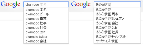 皆さん、okamoooさんのこと知ってます? Googleで検索するとこんな関連キーワードの候補が出てきます。