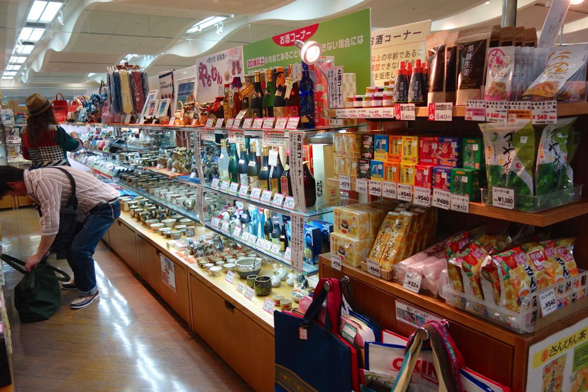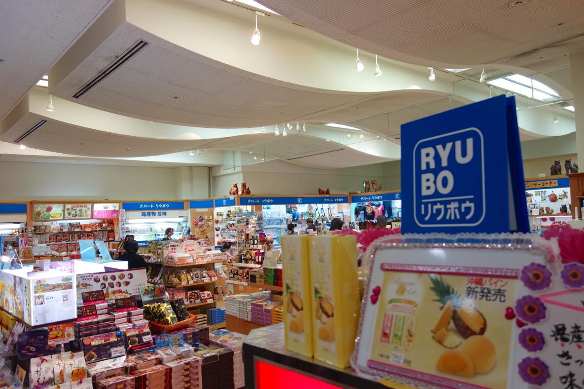 沖縄のデパート「リウボウ」がやっているお土産屋さんです。ターミナルに入って、建物の真ん中よりも左側にある、青いリウボウの看板が目印です。