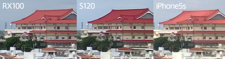500px くらいで見ると、色の違いくらいしかわからないですよね。上から、RX100、S120、iPhone5s です。ちなみに S120 は色のモードがビビットになってたので色が派手。