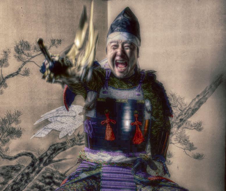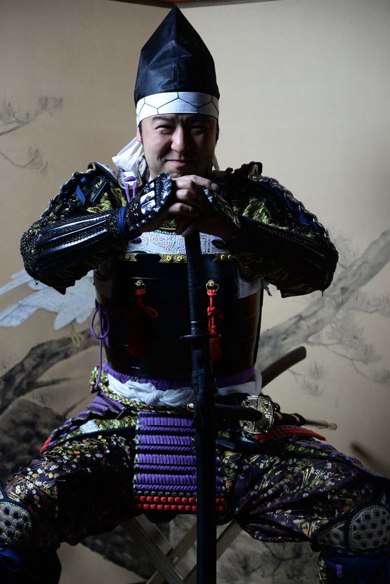 撮影の時間は30分くらいでしたでしょうか? 甲冑の重さ、そして体の自由の効かなさで、汗をかくくらいでした。疲れた~!
