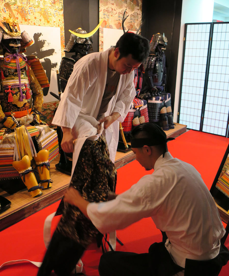 僕はTシャツ、ジーンズだったんですが、靴下を履き替えたくらいで、後は服の上から鎧を見に付けました。足袋ソックスをもらえるので、それに履き替えたら、あとはスタッフさんにおまかせです。