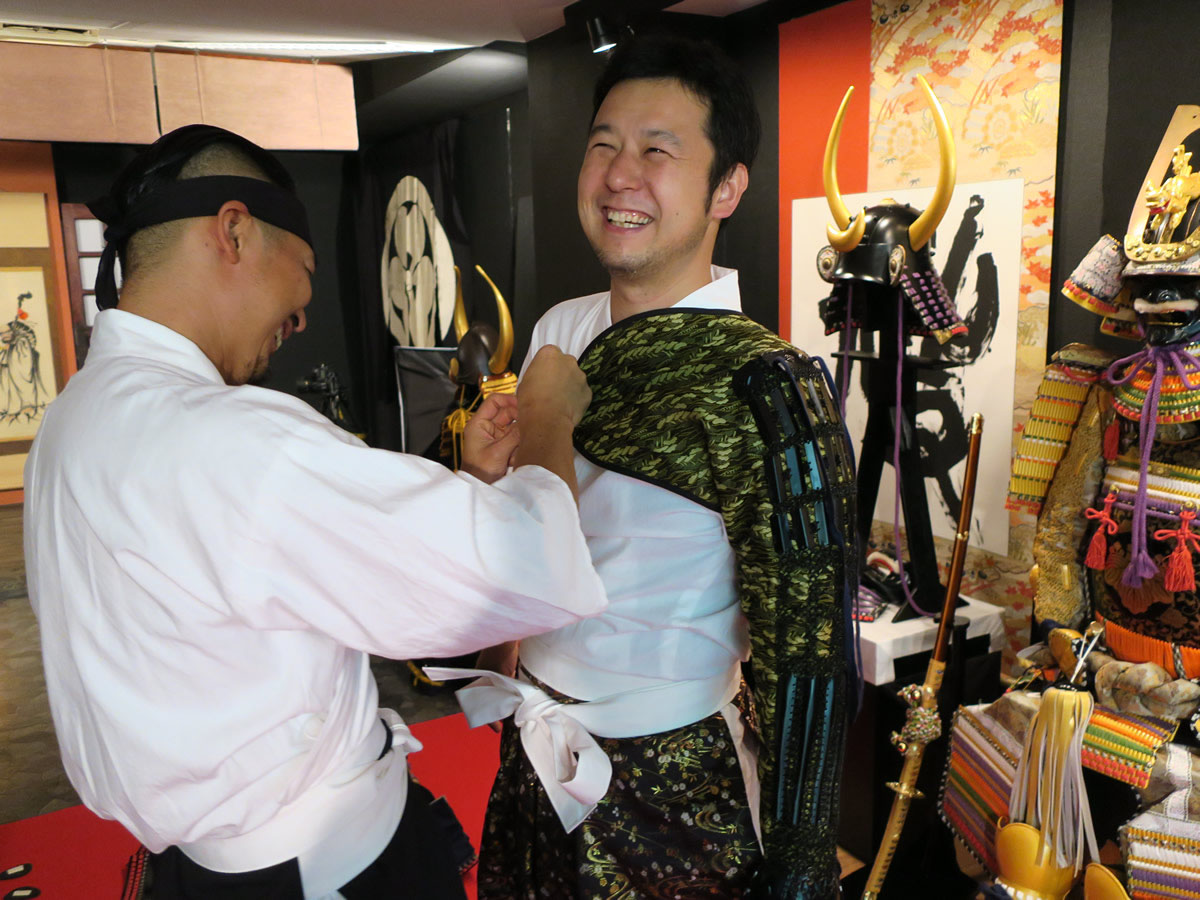 ここは「サムライアーマーフォトスタジオ」、甲冑を身に着けて写真が撮れるスタジオなんです。