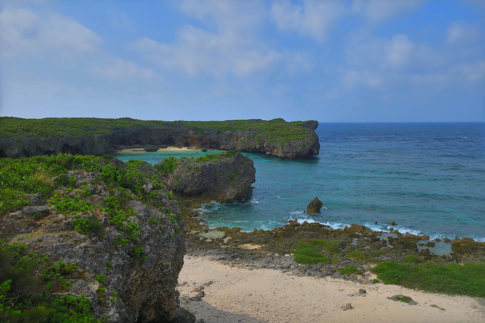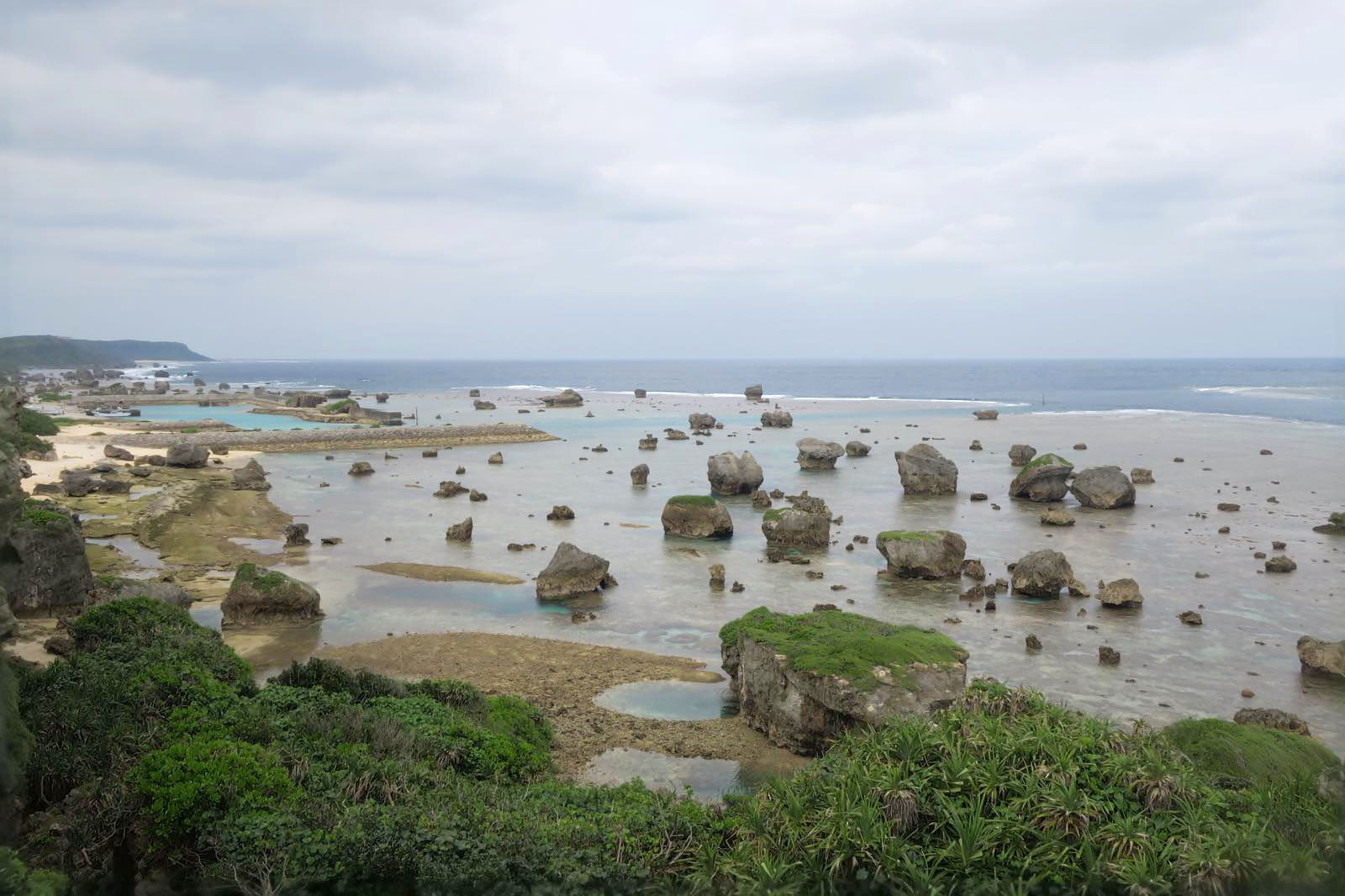 さて、下地島の観光スポットで有名な通り池に行ってきました。まずは駐車場に車を停めて、海の方へ歩いて行きます。