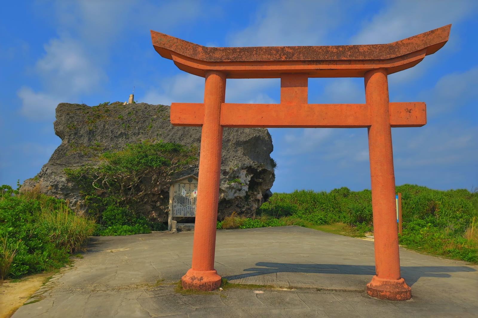 こちらは巨石。1771年、八重山地震で起こった津波で打ち上げられたとされる高さ12メートルの岩です。この津波は八重山地方では、50メートルを超えた場所もあるそうですが、こんな大きな岩が打ち上げられる、ということだけでもその恐ろしさがわかります。