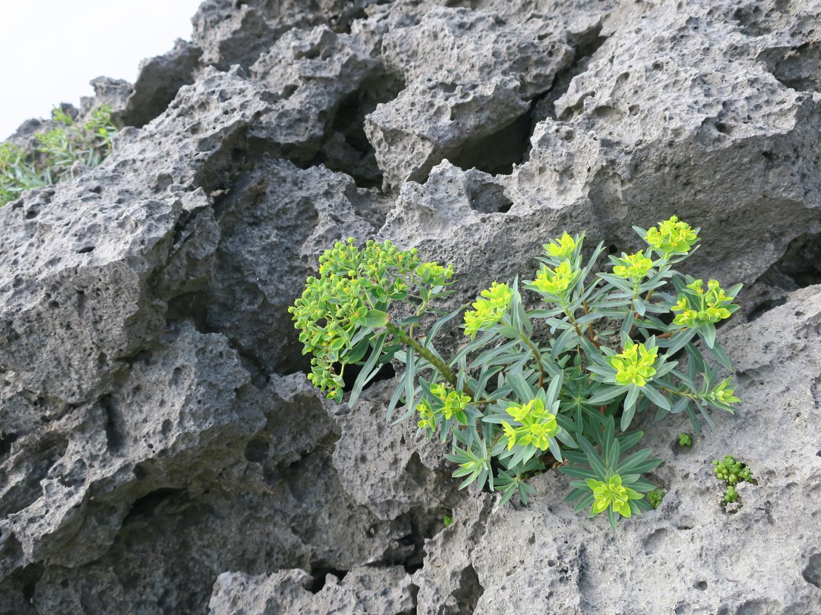崖に咲く花。こんな石灰だらけの場所でどうして生きていけるのか、不思議です。