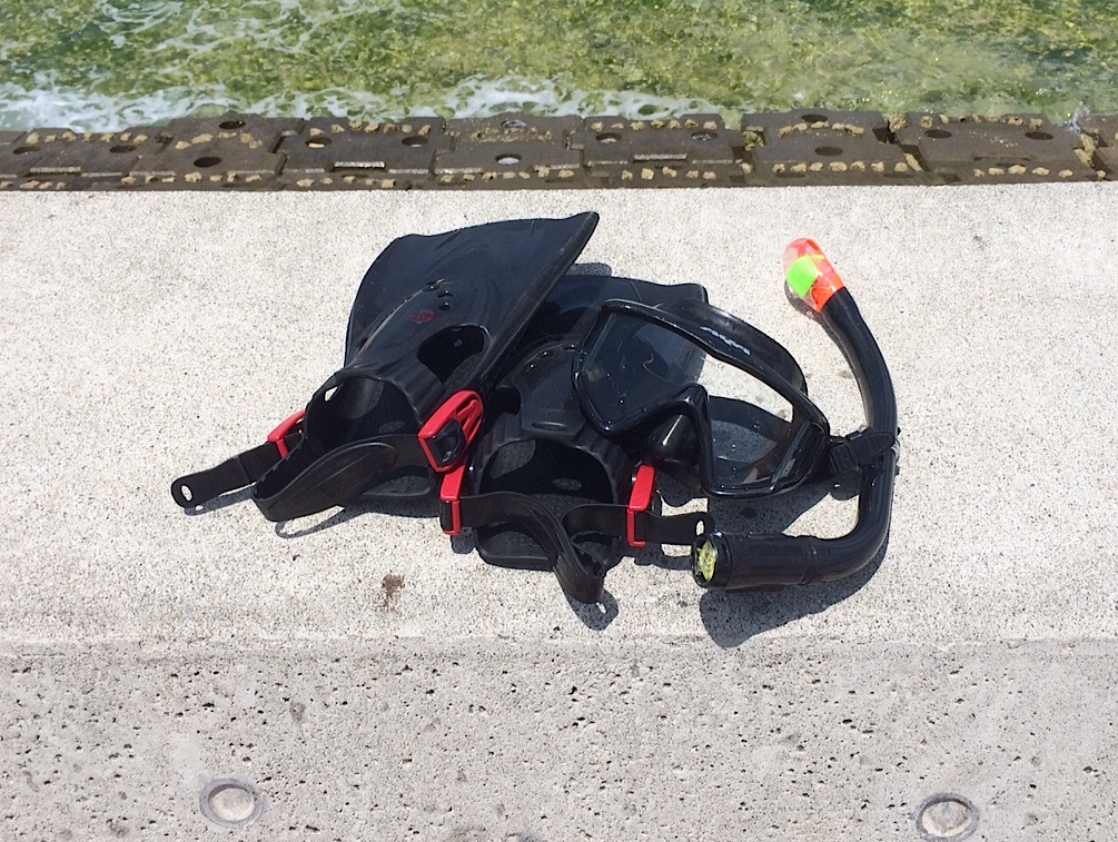 あとはペットボトルに水道水を入れて、1リットルくらい水を持っていきます。海から上がった後のシャワー代わりですね。今年はすでに2回シュノーケルをしました。まだニモ的なクマノミには出会ってませんが、これからが楽しみです。