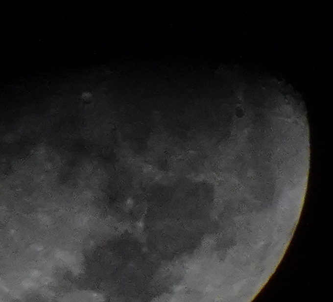 かなりにじみはありますが、軽量小さめのデジカメでクレーターまで見えちゃうんですから、十分じゃないでしょうか。