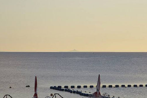 見る場所によっては、水平線の上にちょっとだけ見えるので、