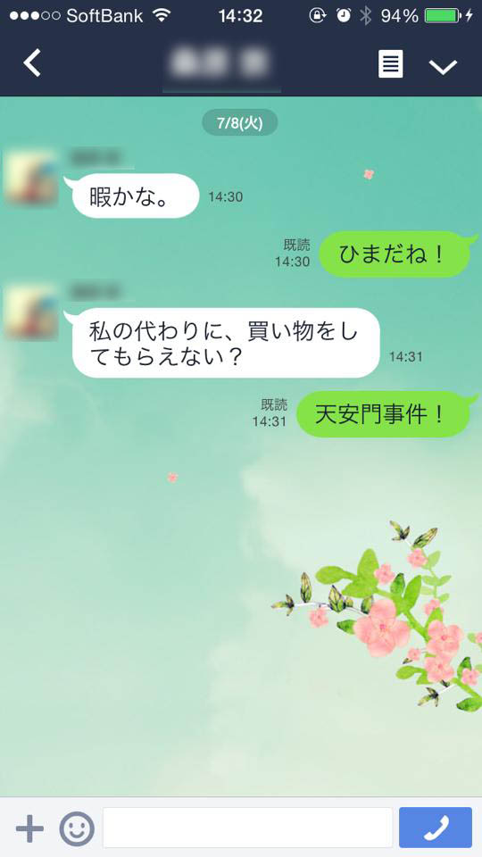 LINE 乗っ取りらしきものが来たのであの呪文で撃退してみた。 日常のこと -diary- X Facebook はてブ LINE コピー 2014.07.08 こんな感じです。 ほんと、効果テキメンのようです。 おじさんの目線 元気に「ひまだね!」って応えちゃったよ。だって台風で暇なんです…