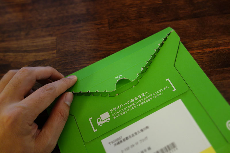 こんな緑のパッケージで届きました。オーダーしたのが11/6、沖縄に届いたのが11/14。