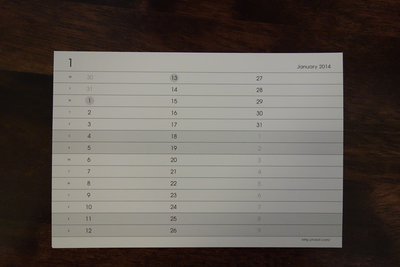 2014年版のカレンダーも作れるってことで、カレンダーを作ってみました。