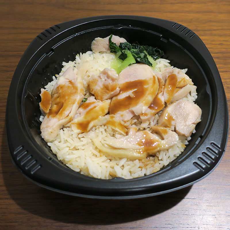 パッケージを開けるとこんな感じで、トレイに入ったカオマンガイと別添のソースが出てきます。