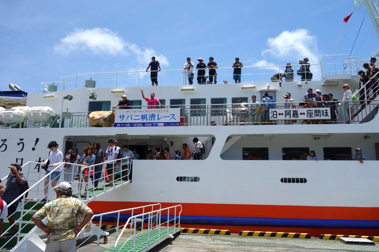 座間味から沖縄本島まで行くレースのこと。今、フェリーで2時間かけてきたところを
