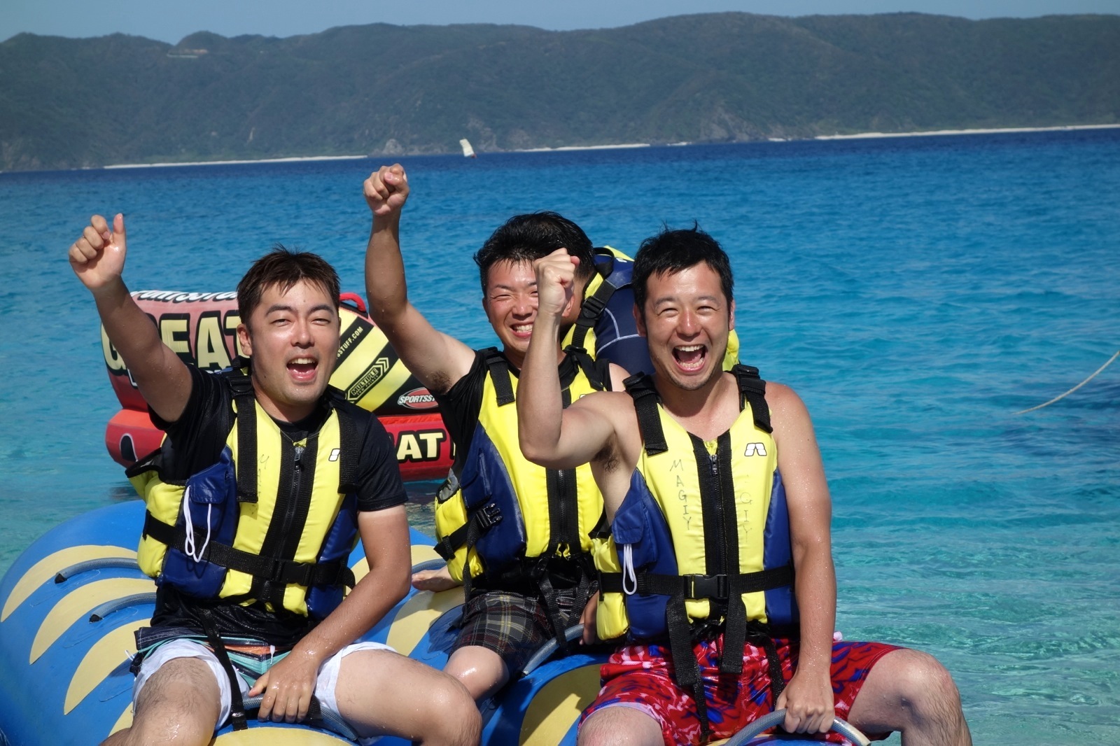 さて、シュノーケリングの後で一休みしたら、今度はバナナボート的なものに