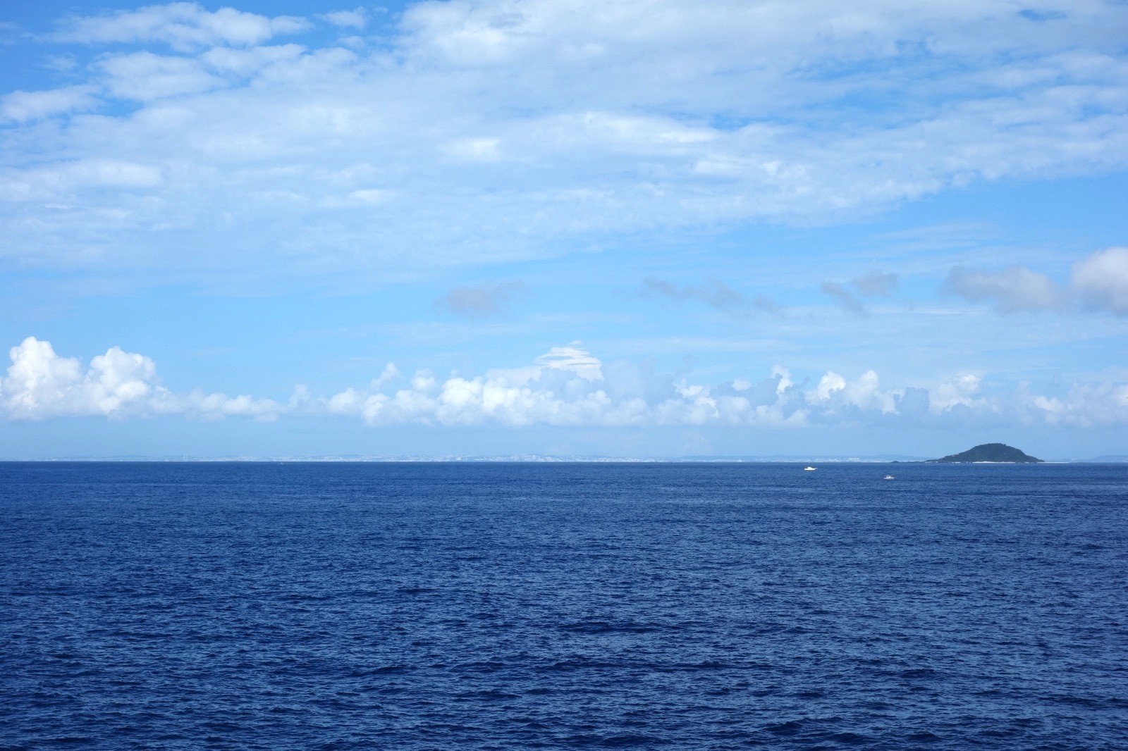フェリーに揺られて90分。那覇の市街地が見えてきました。