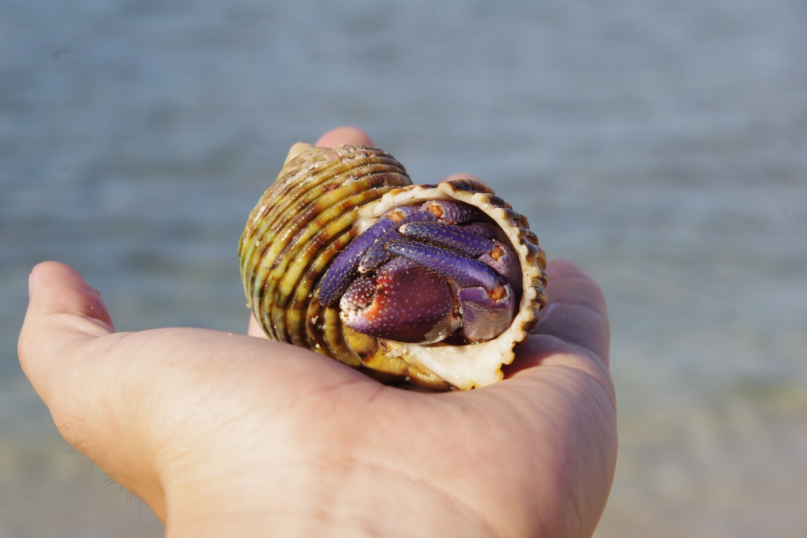 山まで歩いて展望台に行ったり、やどかりと戯れてみたり。